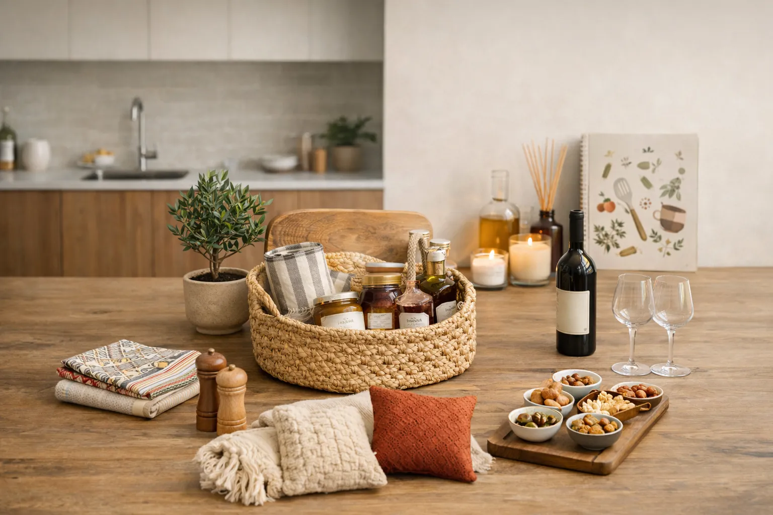Bougie de qualité, vase simple, torchons épais, dessous de verre, assortiment gourmand : ce sont des options faciles à intégrer, sans imposer une décoration.