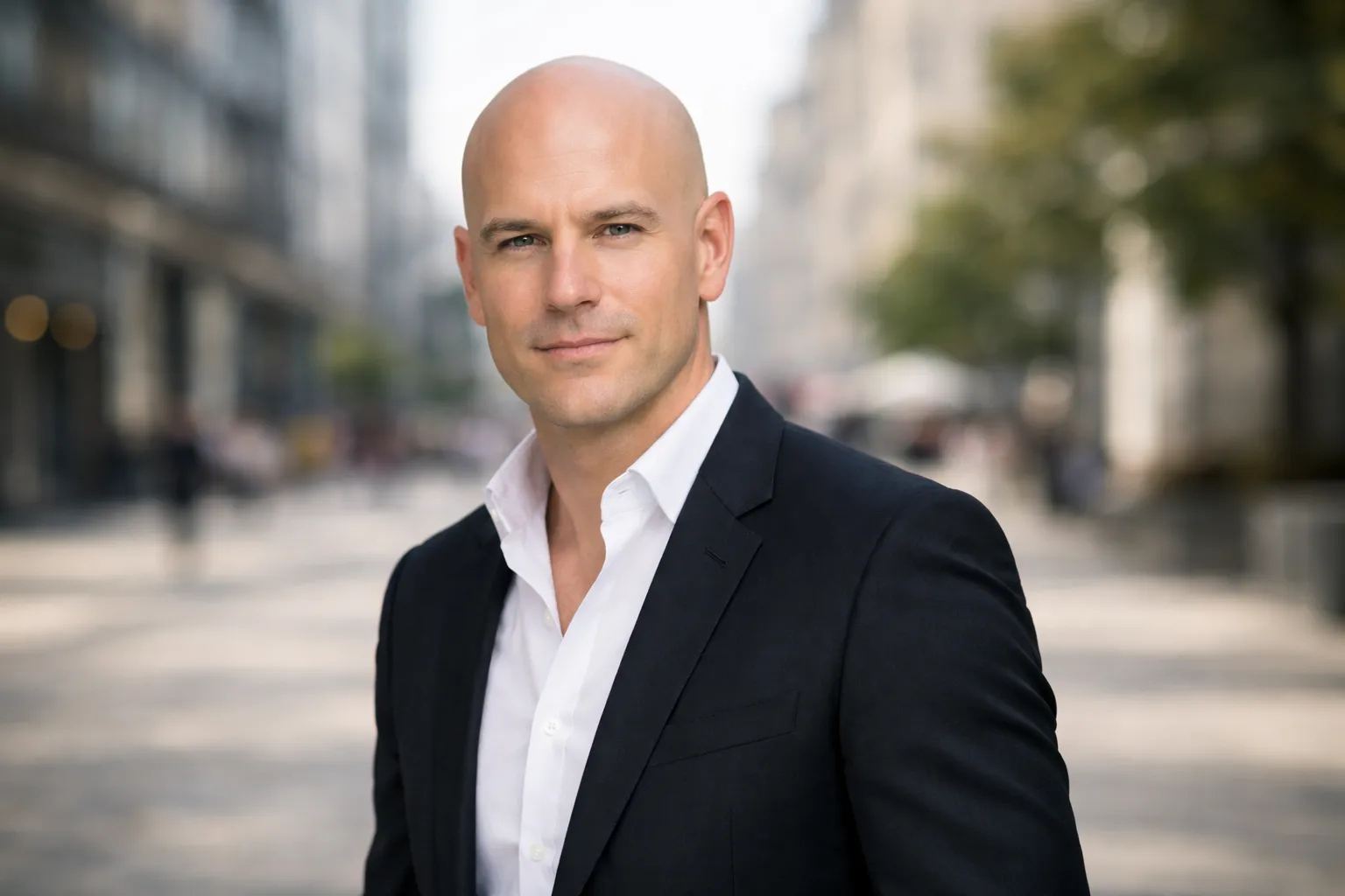 Si l’objectif est d’avoir l’air volontaire — pas “par défaut” — tu vas surtout travailler sur : la façon dont tu portes tes cheveux (ou ton crâne), la qualité perçue de ta peau, et la structure de tes tenues.