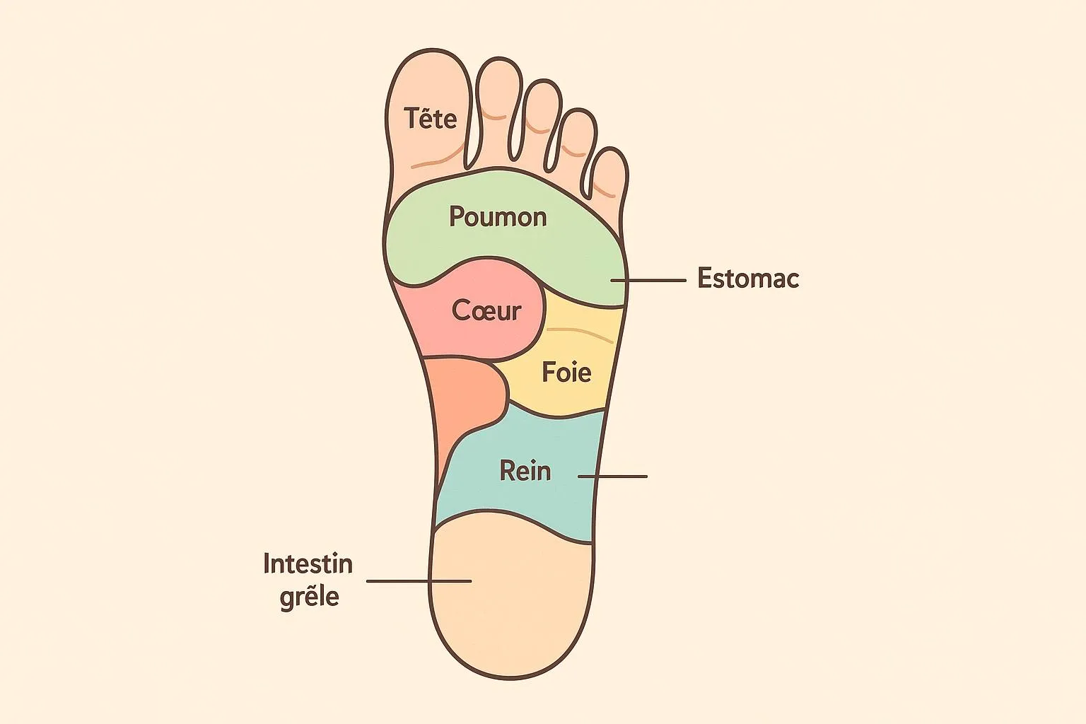 La réflexologie plantaire repose sur une idée simple : le pied est une “carte miniature” du corps humain. Chaque zone plantaire correspond à un organe, une glande ou une partie du corps. En appliquant une pression ciblée sur ces points, le réflexologue agit à distance sur les fonctions corporelles et énergétiques.